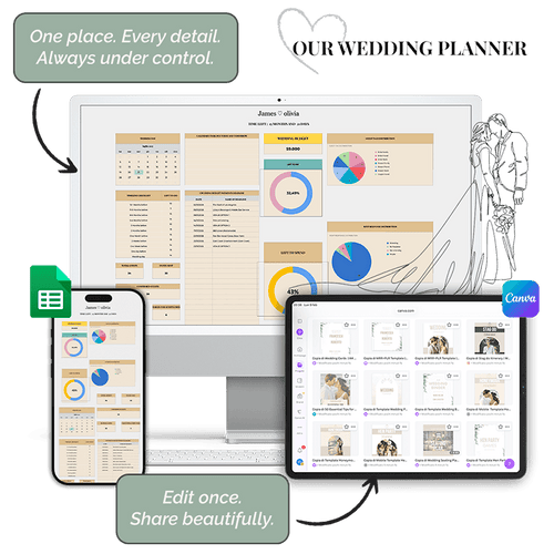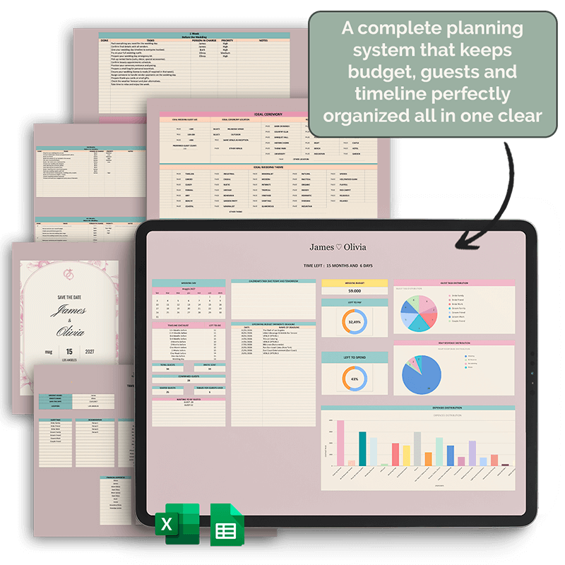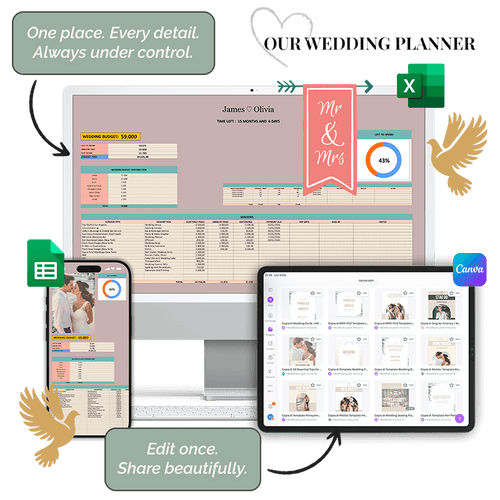 The Perfect Day Planner is a complete Google Sheets wedding planning system, designed to help you organize every part of your wedding without stress or confusion.
