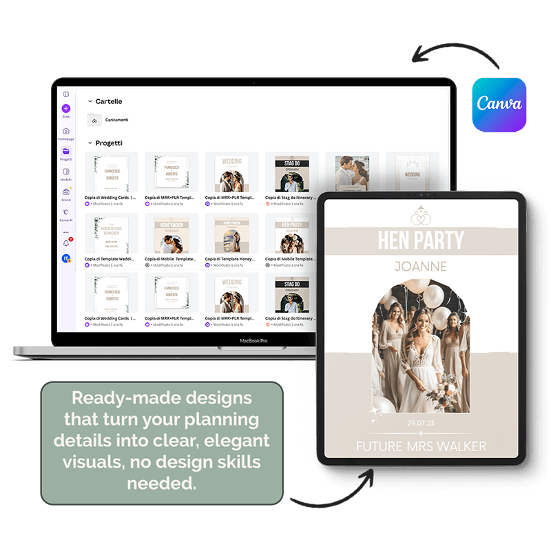 Inside the planner you’ll also find exclusive Canva templates, designed to save you time and help you communicate your wedding clearly and beautifully.